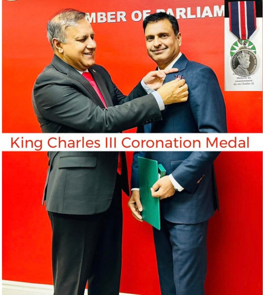 Shafqat Ali, Member of Parliament for Brampton Centre, proudly presented the King Charles III Coronation Medals to five distinguished community leaders in recognition of their exceptional contributions to Brampton and Canada. The medals, issued by the Government of Canada to commemorate His Majesty King Charles III’s Ascension to the Throne, were awarded to Dr. Anurag Gupta, Farooq Malik, Arshad Bhatti, Gian Paul, and Abdul Rashid during a heartfelt ceremony in Brampton.