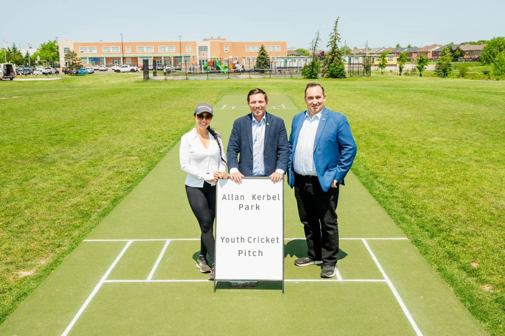 The City of Brampton officially opened the new youth cricket pitch at Allan Kerbel Park on Monday, part of its ongoing efforts to grow the sport locally and solidify its status as “the cricket capital of Canada.” The new naturalized field was unveiled by Mayor Patrick Brown alongside Councillors Rowena Santos and Paul Vicente.