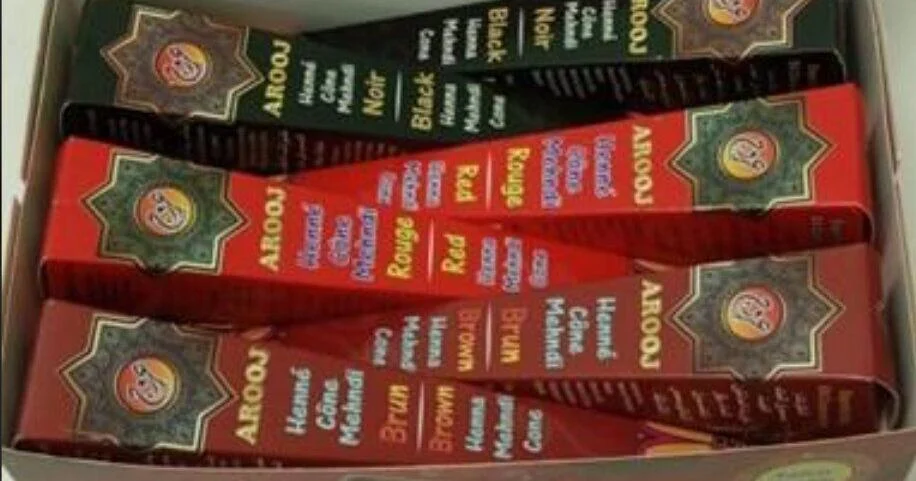Arooj Henna Cones sold across Canada have been recalled due to a chemical hazard that may cause serious skin damage, including chemical burns. Health Canada issued the recall after confirming the presence of phenol, a prohibited ingredient known to be a skin sensitizer with corrosive properties.