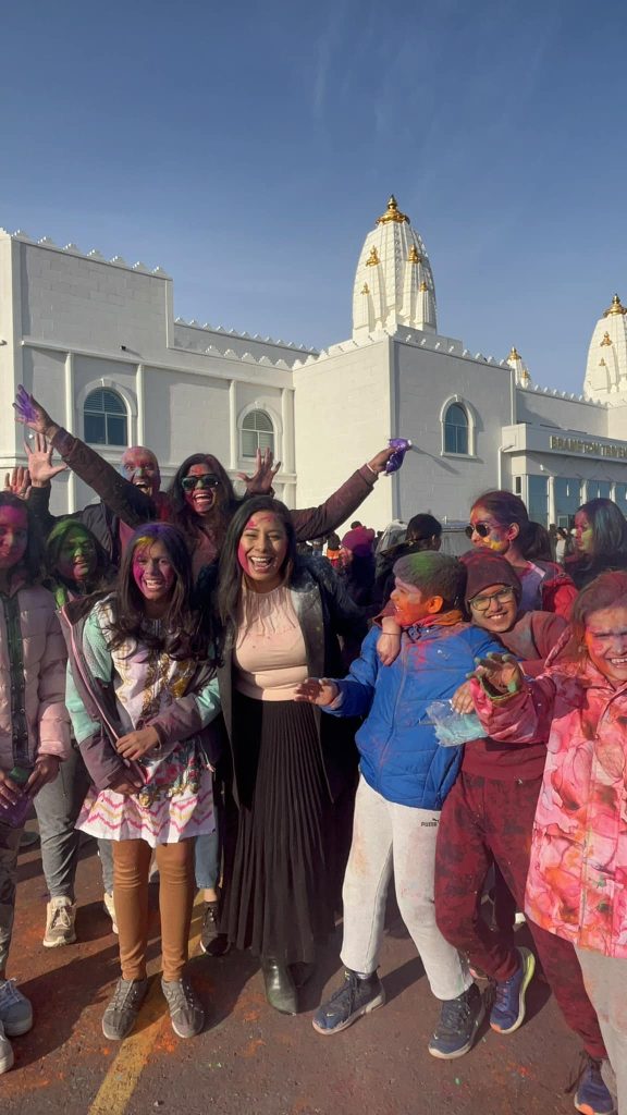 The celebration erupted with music, dance, and the iconic tossing of colored powders, rooted in the legend of Prahlad and Holika—a tale of good triumphing over evil. Performances by temple students, including Bollywood dances and Sanskrit recitations, filled the air with energy, while attendees of all ages reveled in the joyous spirit of Holi at the Triveni Mandir, a cornerstone of Brampton’s Hindu community since its inception.